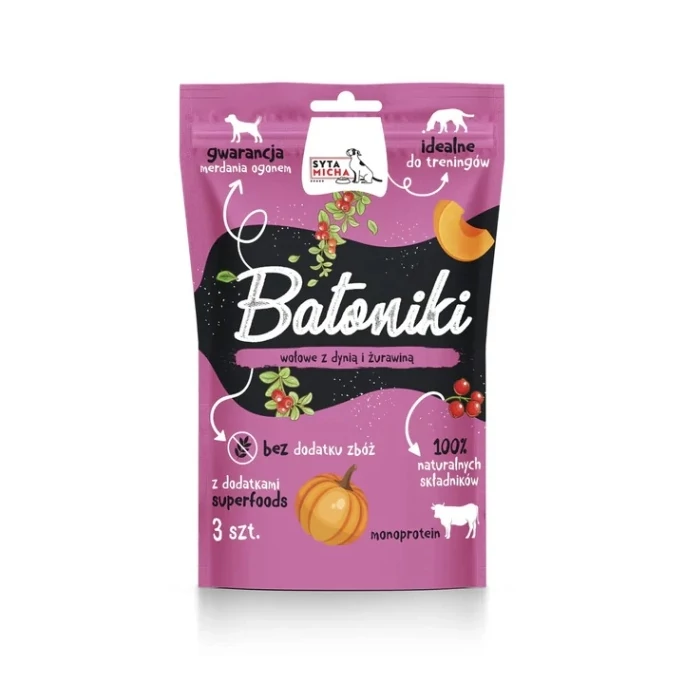 A magas tápértékű marhahús, a karotinoidokban gazdag diétás sütőtök és az antibakteriális tulajdonságokkal rendelkező áfonya tökéletes kombinációja teszi ezeket a természetes jutalomfalatokat finom vitaminbombává kedvenced számára.