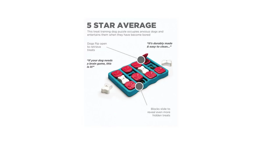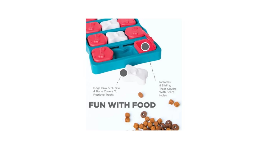 Ez a kirakós játék elsősorban olyan kutyáknak ideális, akik játszottak már az 1-es szintűvel, vagy próbáltak már más logikai játékot. Kemény műanyag alkatrészekből és élelmiszerbiztonsági anyagokból készült, amelyek BPA-, PVC- és ftalátmentesek. Könnyű tisztítani, meleg vízzel és szappannal javasolt.
