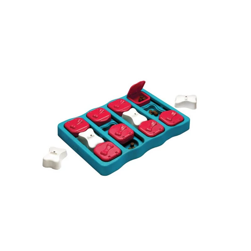 A Dog Brick 2-es szintű Nina Ottosson logikai játék az egyik legnépszerűbb játék. Három tölthető rekesze van és további lépéskombinációkat, akadályokat tartalmaz. A kutyának igazi kihívás, összpontosítania kell, hogyan juthat a finom falatokhoz.