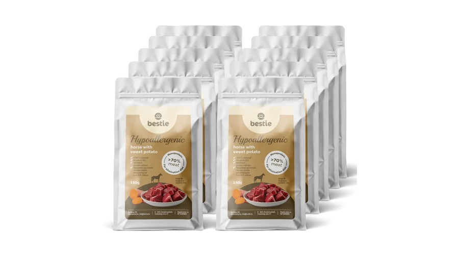 Ló édesburgonyával hipoallergén párolt menü kutyáknak, 10x150g, Bestie